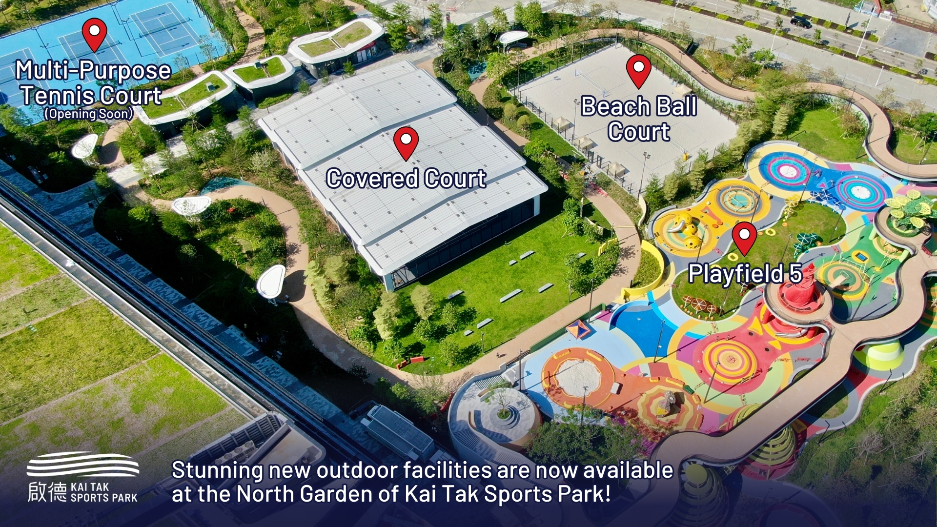 (7 August, 2025) As Hong Kong's largest integrated sports and entertainment hub, Kai Tak Sports Park (KTSP) is dedicated to promoting sports for all and fostering an inclusive community. This summer, KTSP proudly unveils its brand-new outdoor sports and entertainment zone in the North Garden, transforming it into a vibrant hotspot for sports, family fun, and leisure. The new facilities feature a Covered Court and a Beach Ball Court, both launched in July, along with a Multi-Purpose Tennis Court set to open in the third quarter of this year. Additionally, the expansive 4,300-square-metre Playfield 5 presented by Li-Ning, a family-friendly playground inspired by the Chinese Five Elements, will officially open tomorrow (8 August), catering to visitors of all ages and embodying our vision of “Sports for All” .