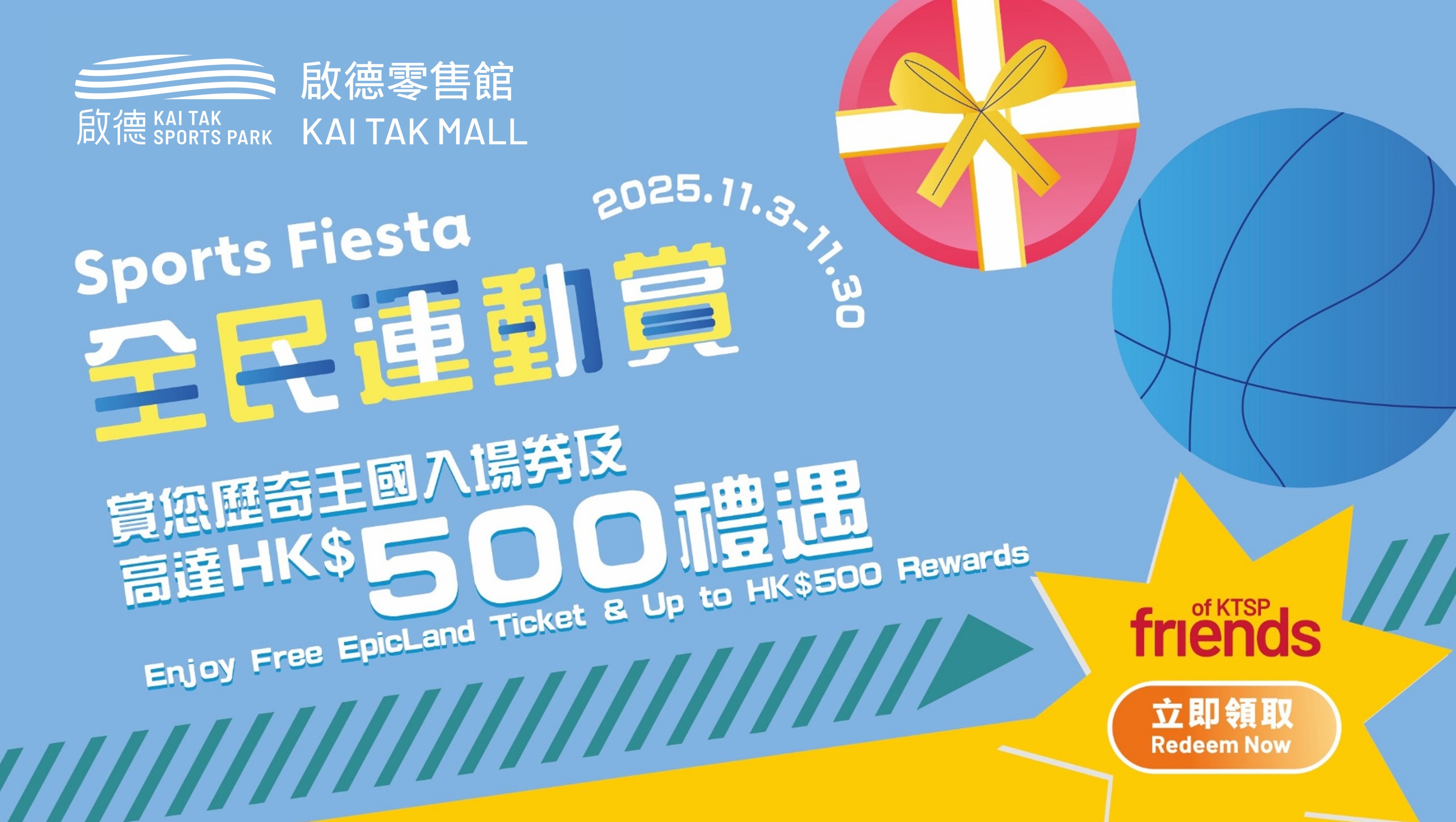 由2025年11月3日至30日,启德体育园之友会员于「启德体育园」流动应用程式登入会员,并前往「奖赏」页 或扫描启德零售馆内相关活动之二维码,即可领取以下奖赏。