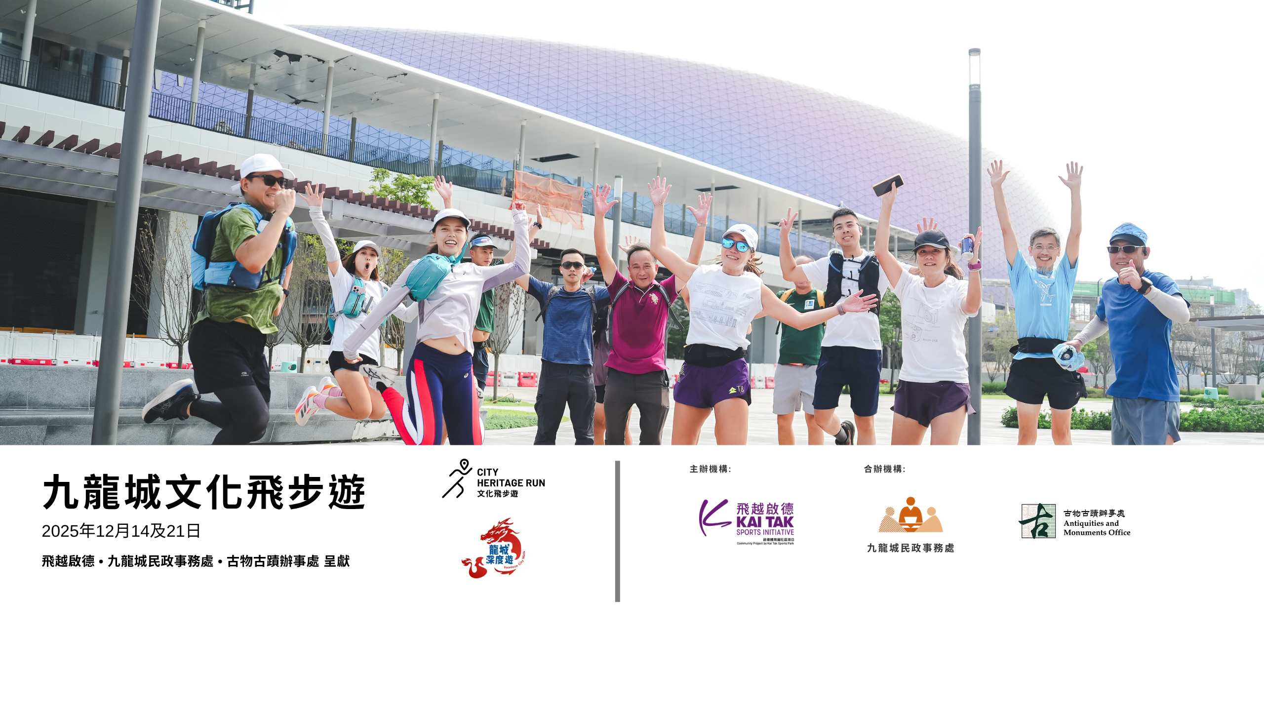 活動路線將帶領大家穿越九龍城區內多個歷史古蹟,感受超過二千年的文化底蘊。今年更首次加入 啟德體育園 作為其中一站!參加者除咗可以緬懷昔日啟德機場的點滴,仲可以親身感受嶄新地標嘅獨特魅力!機會難得,大家快啲報名參加!